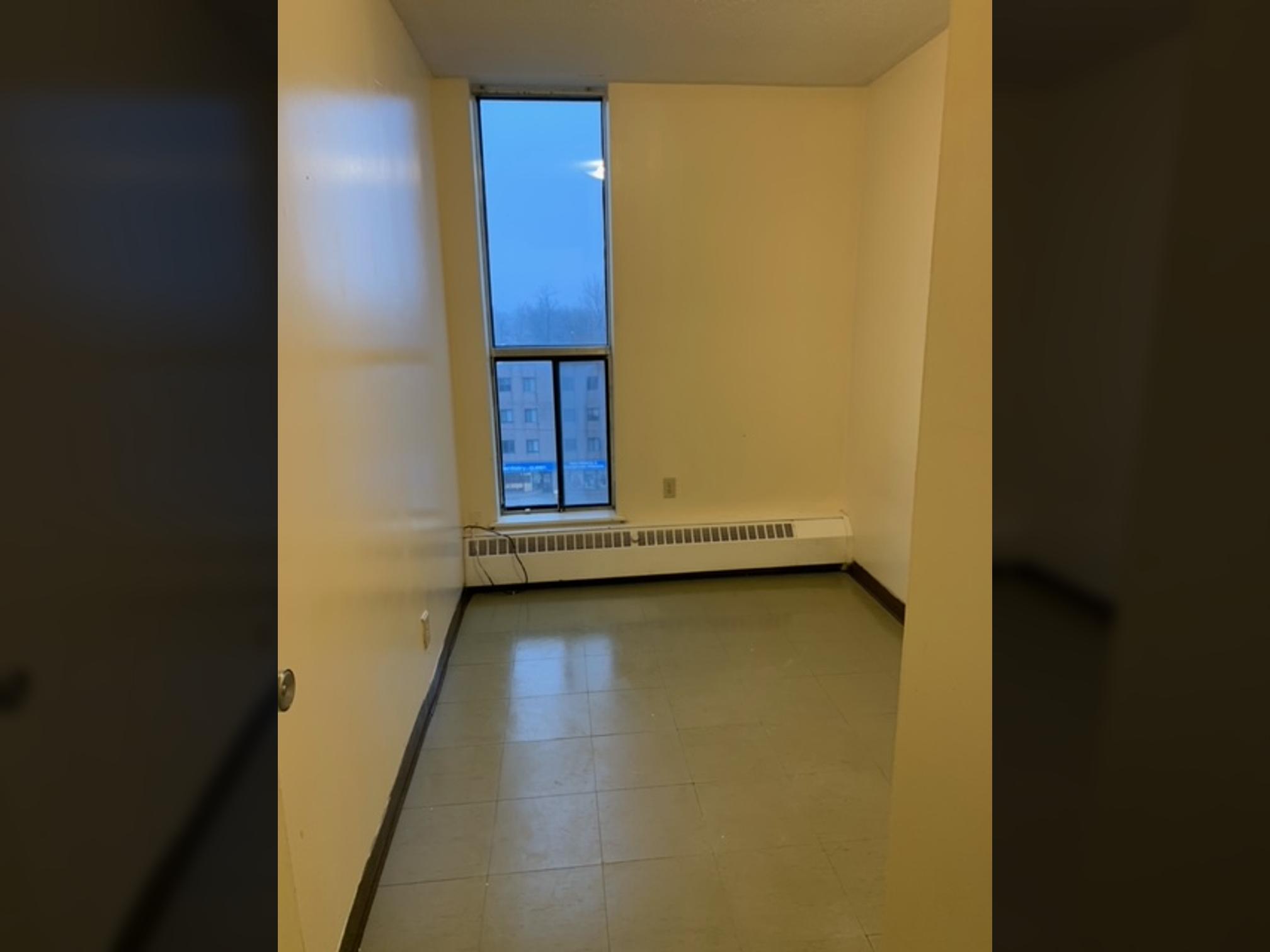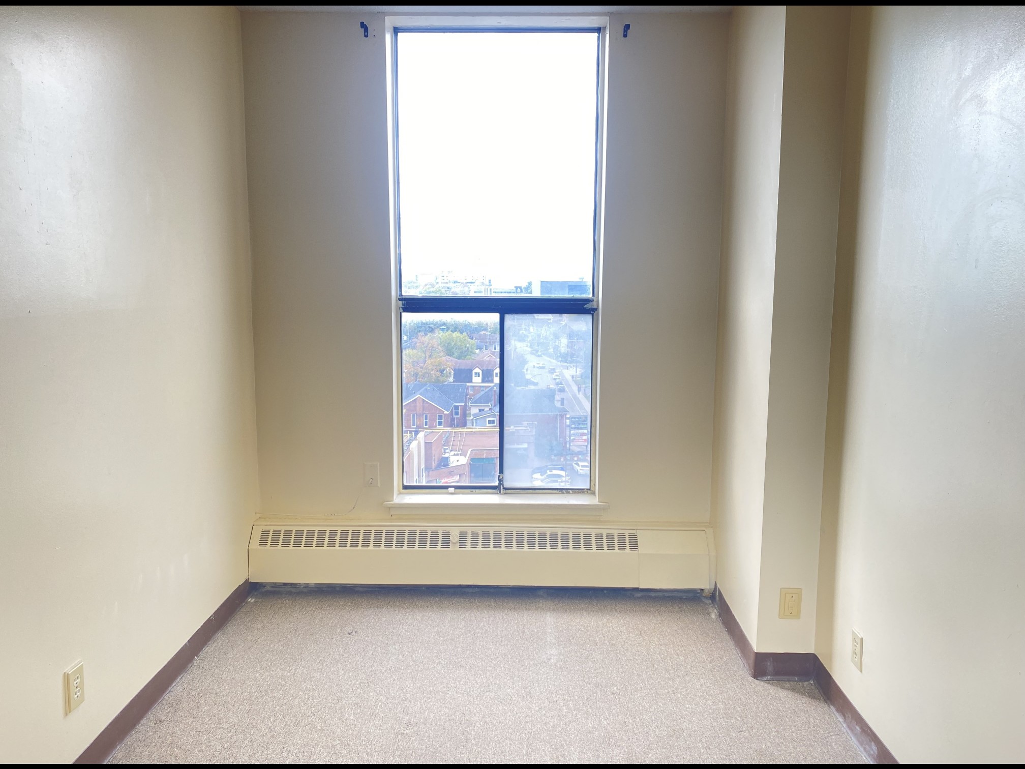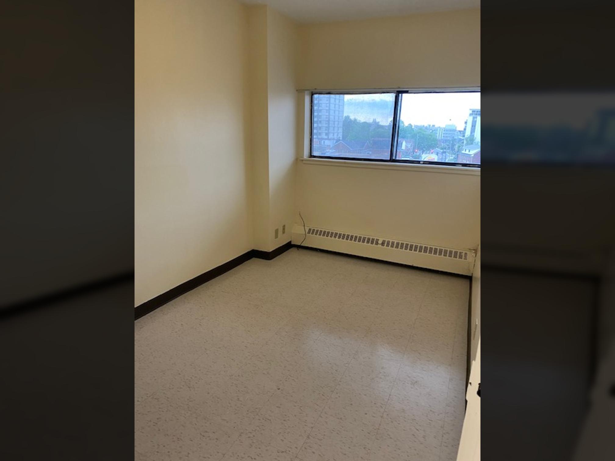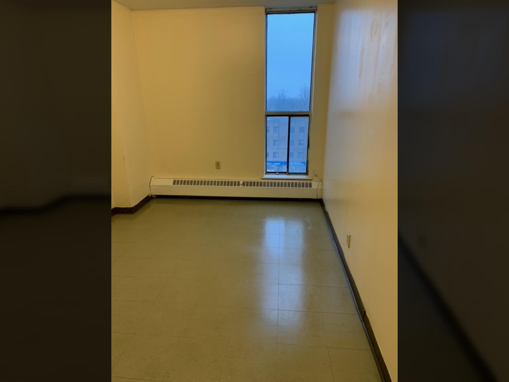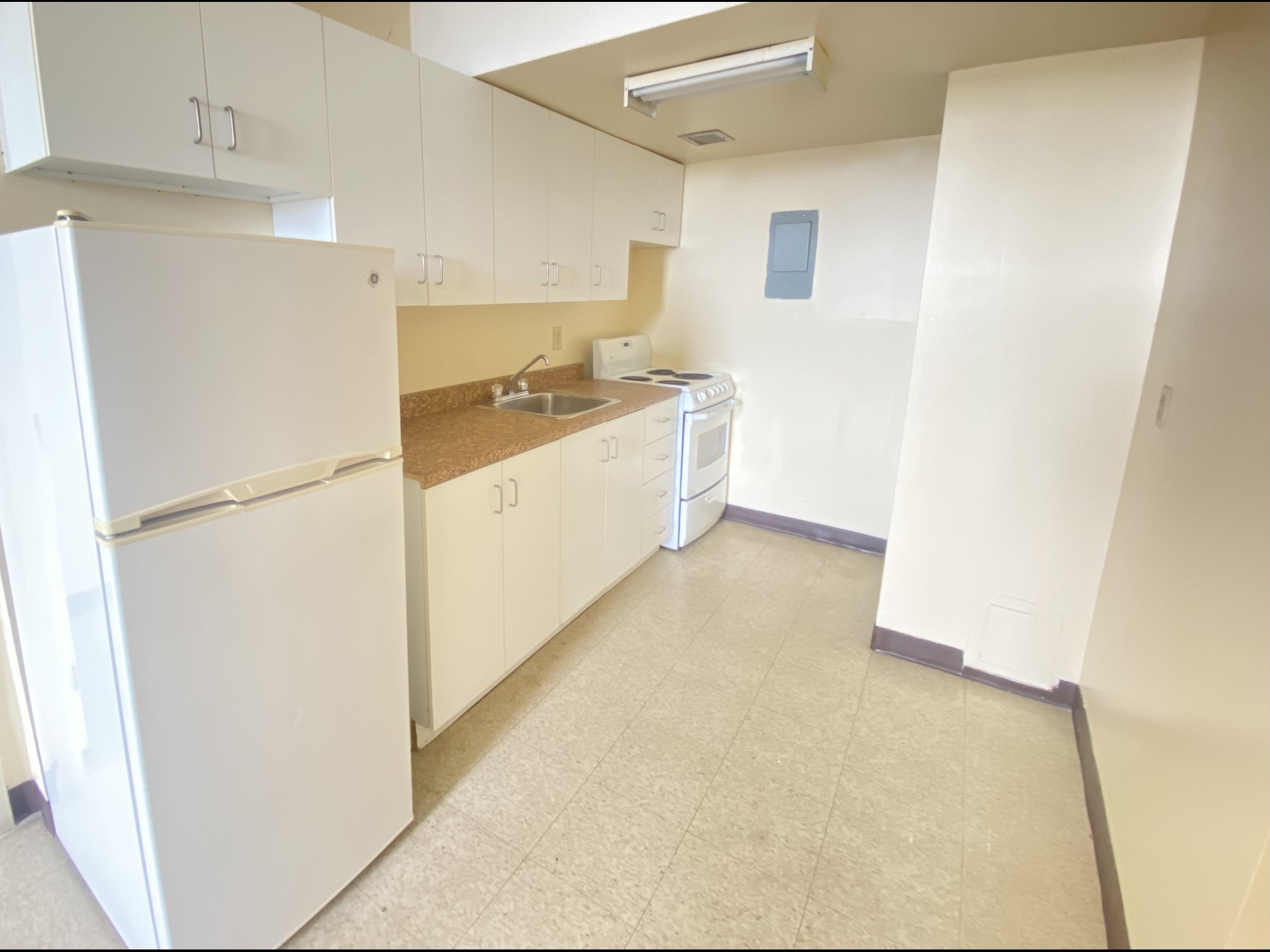 2 bedroom split level apartment with private balcony overlooking Princess Street and a smaller bedroom. The 12th floor provides a great view of Lake Ontario Queens University & Princess Street.