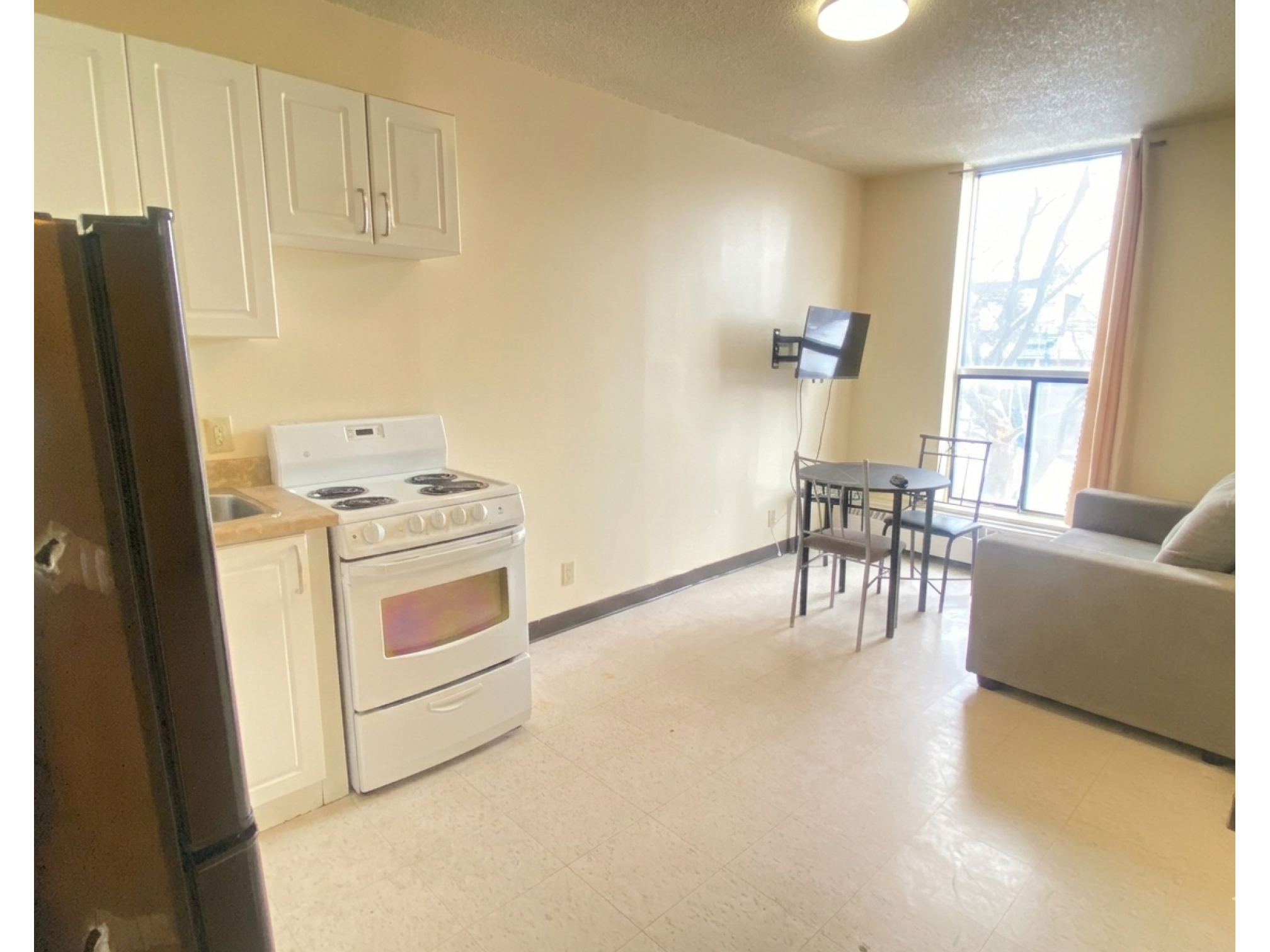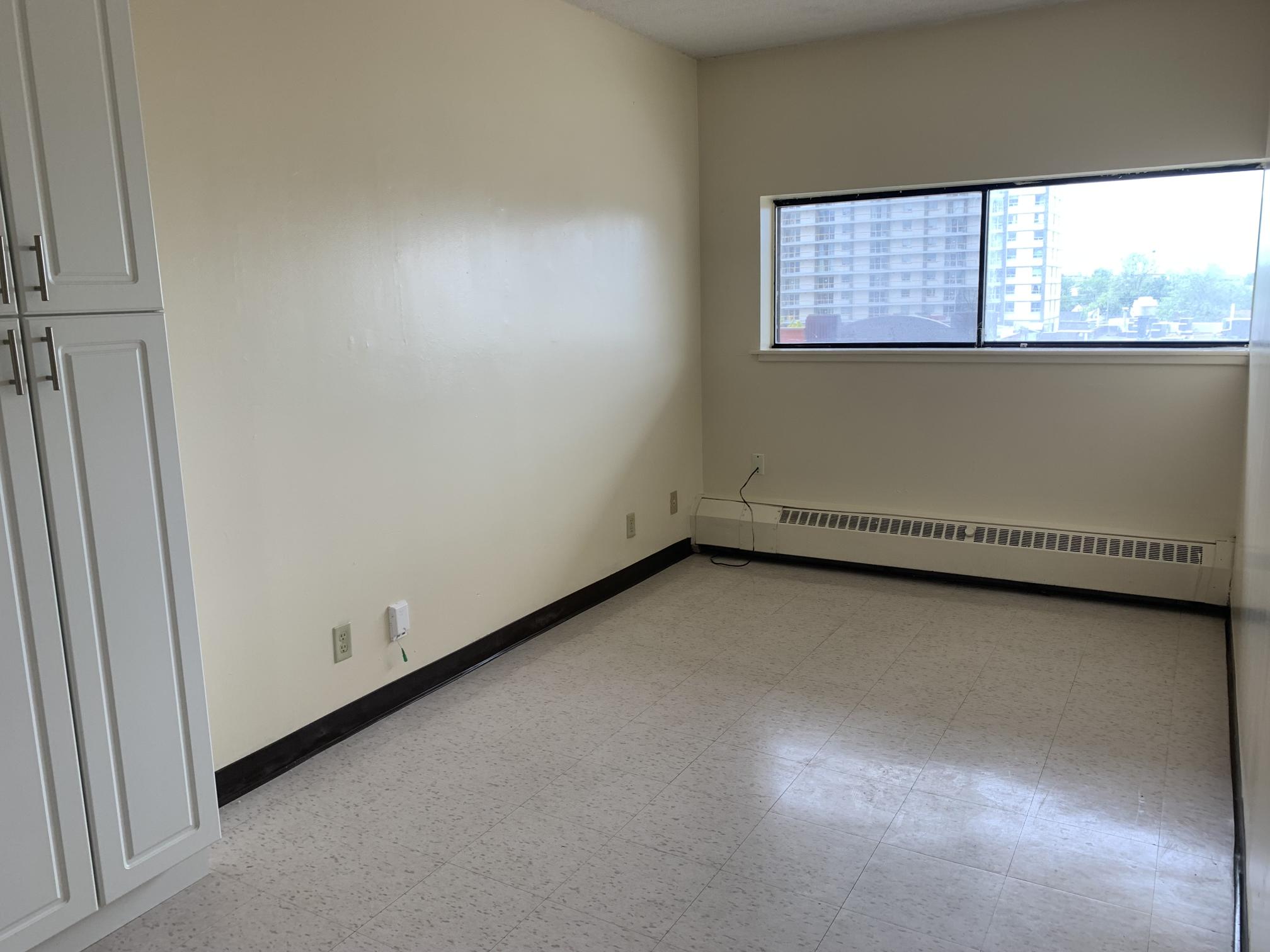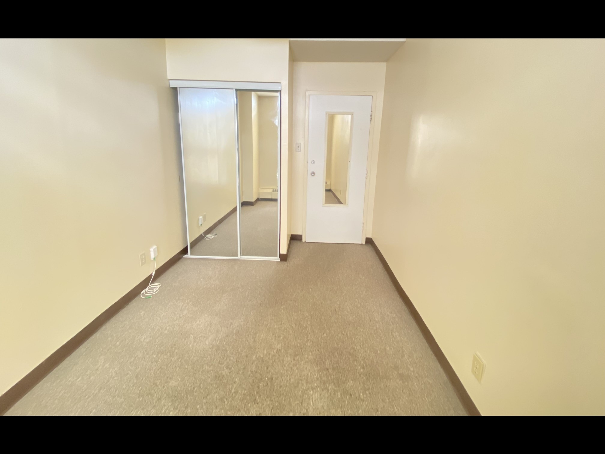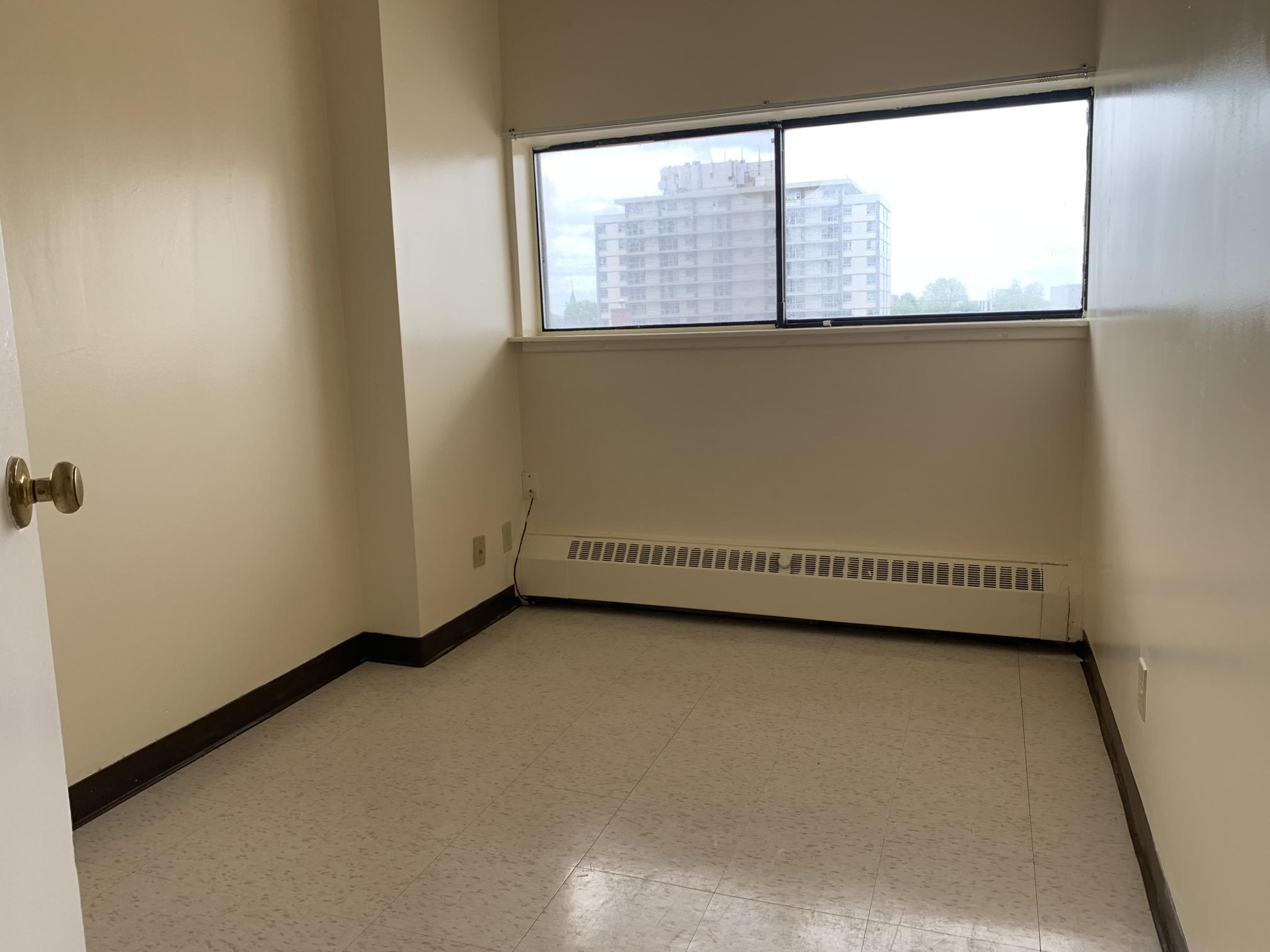 2 bedroom split level apartment with private balcony overlooking Princess Street and a smaller bedroom. The 12th floor provides a great view of Lake Ontario Queens University & Princess Street.