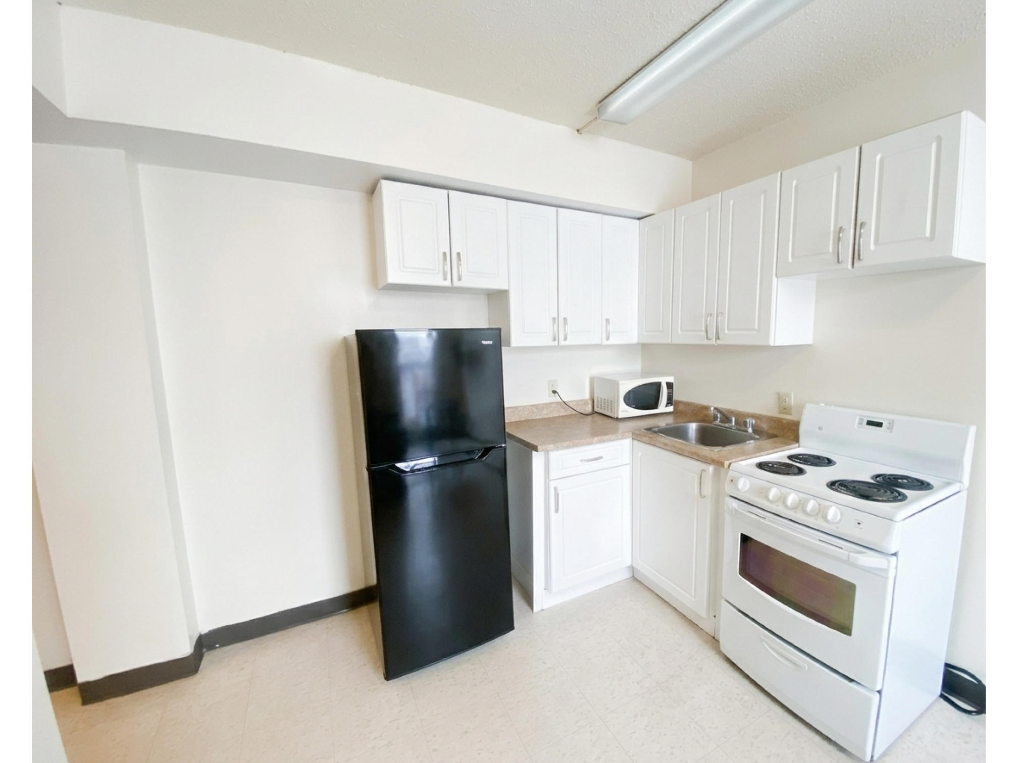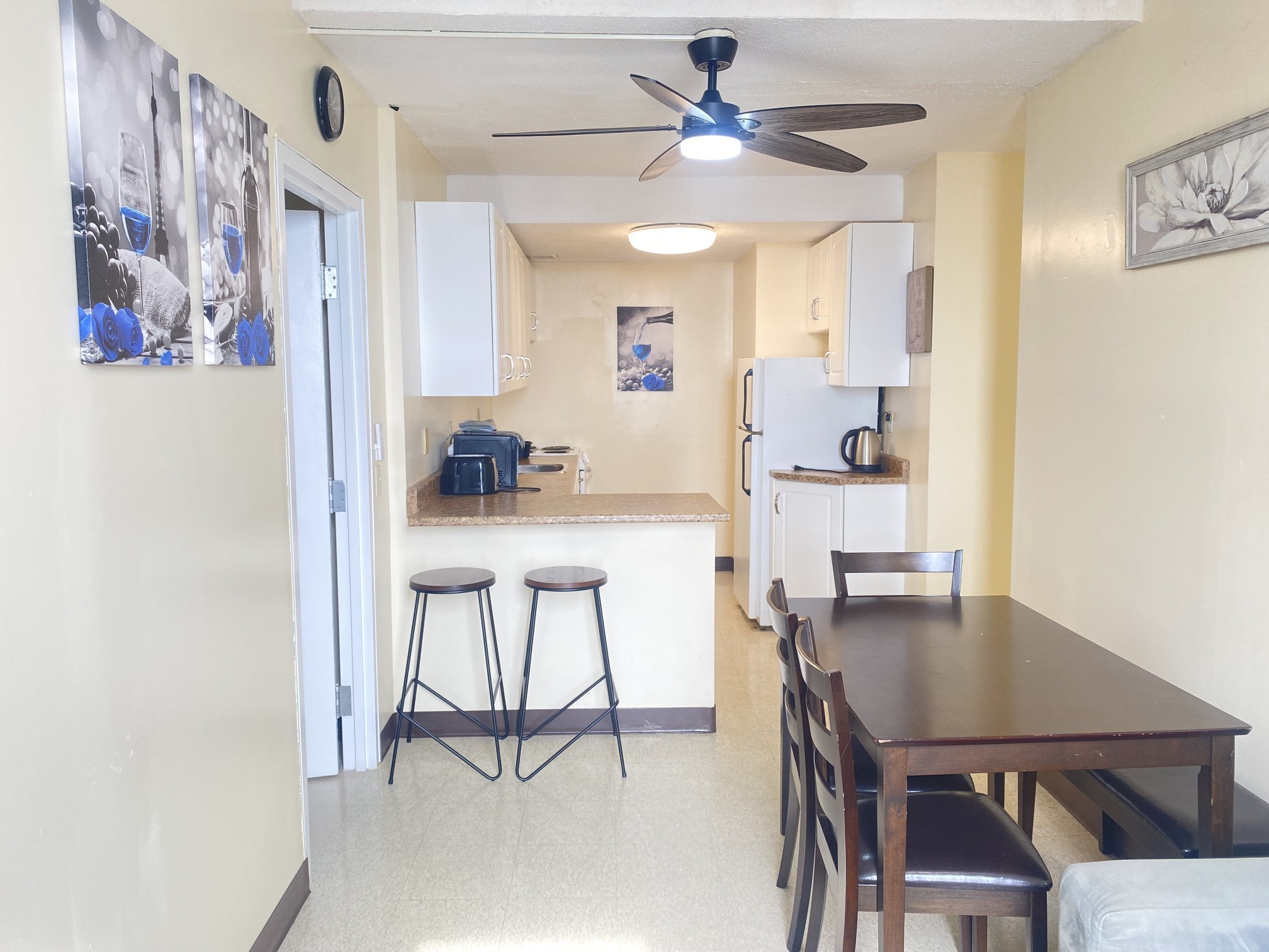 2 bedroom apartment with a modern kitchen. Some feature an eating area Counter and Bar Stools.