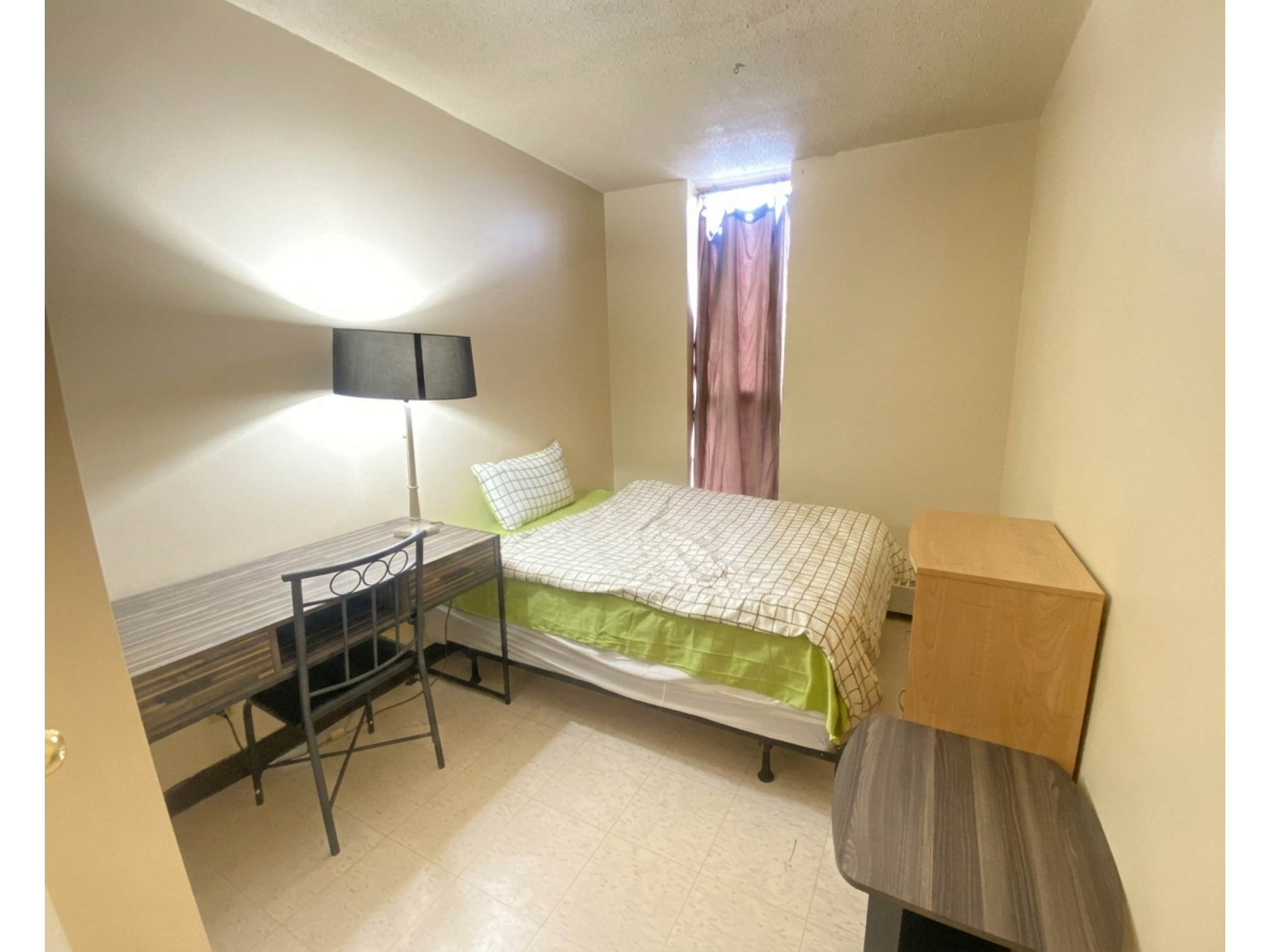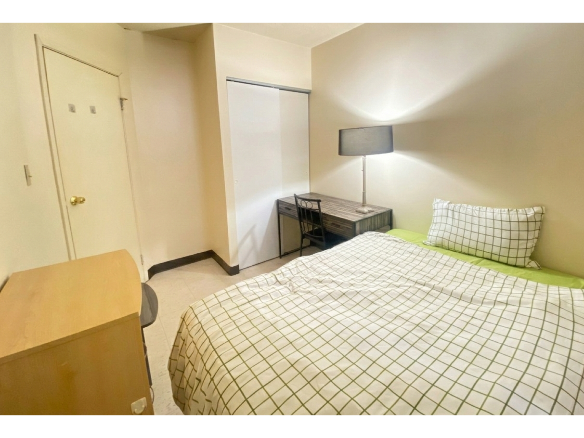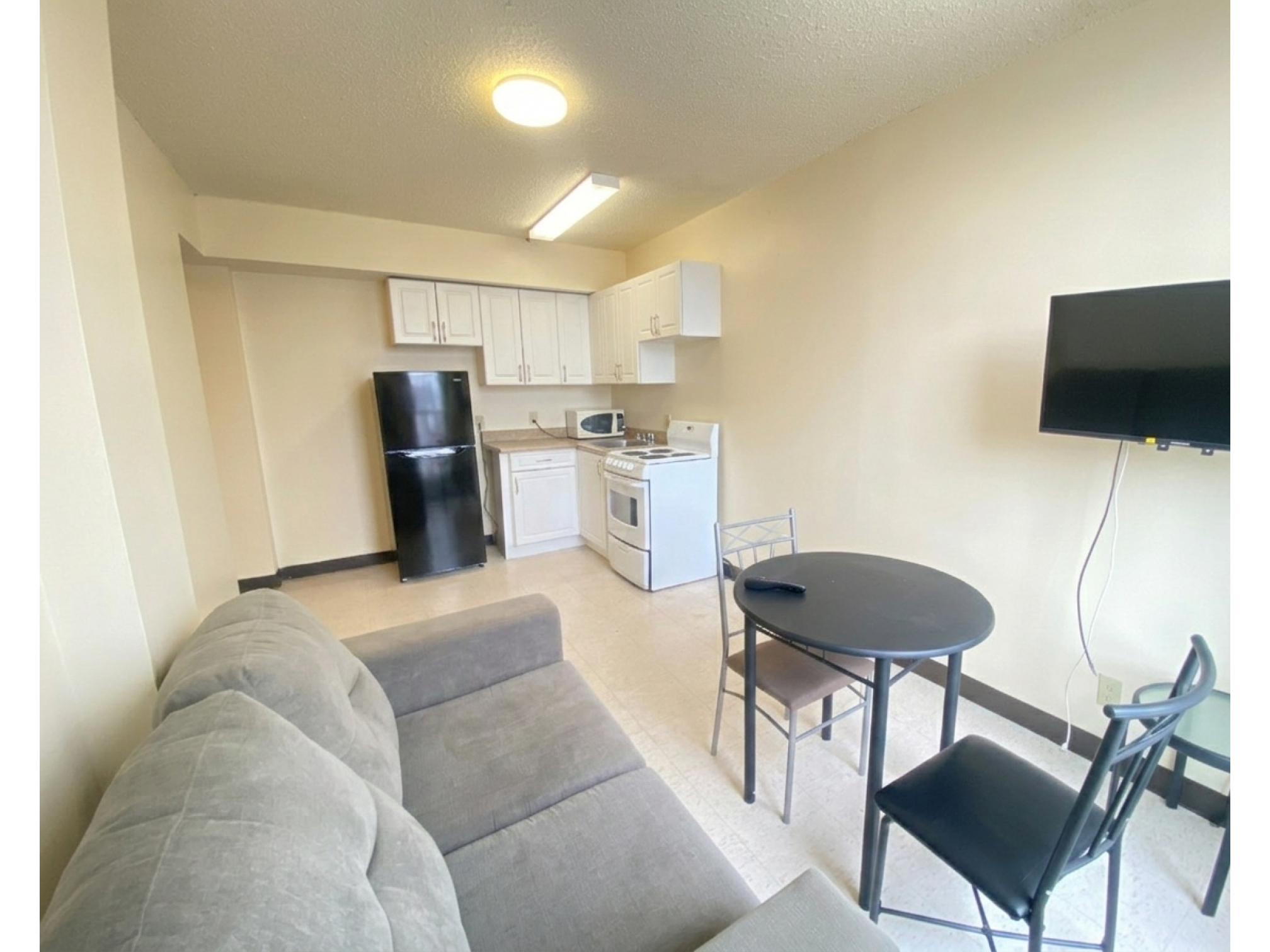 2 Bed move-in ready fully furnished apartment with double beds, bedding, appliances, dishes, cutlery, TV, table & chairs, couch-chesterfield chair, dresser & night table in each bedroom