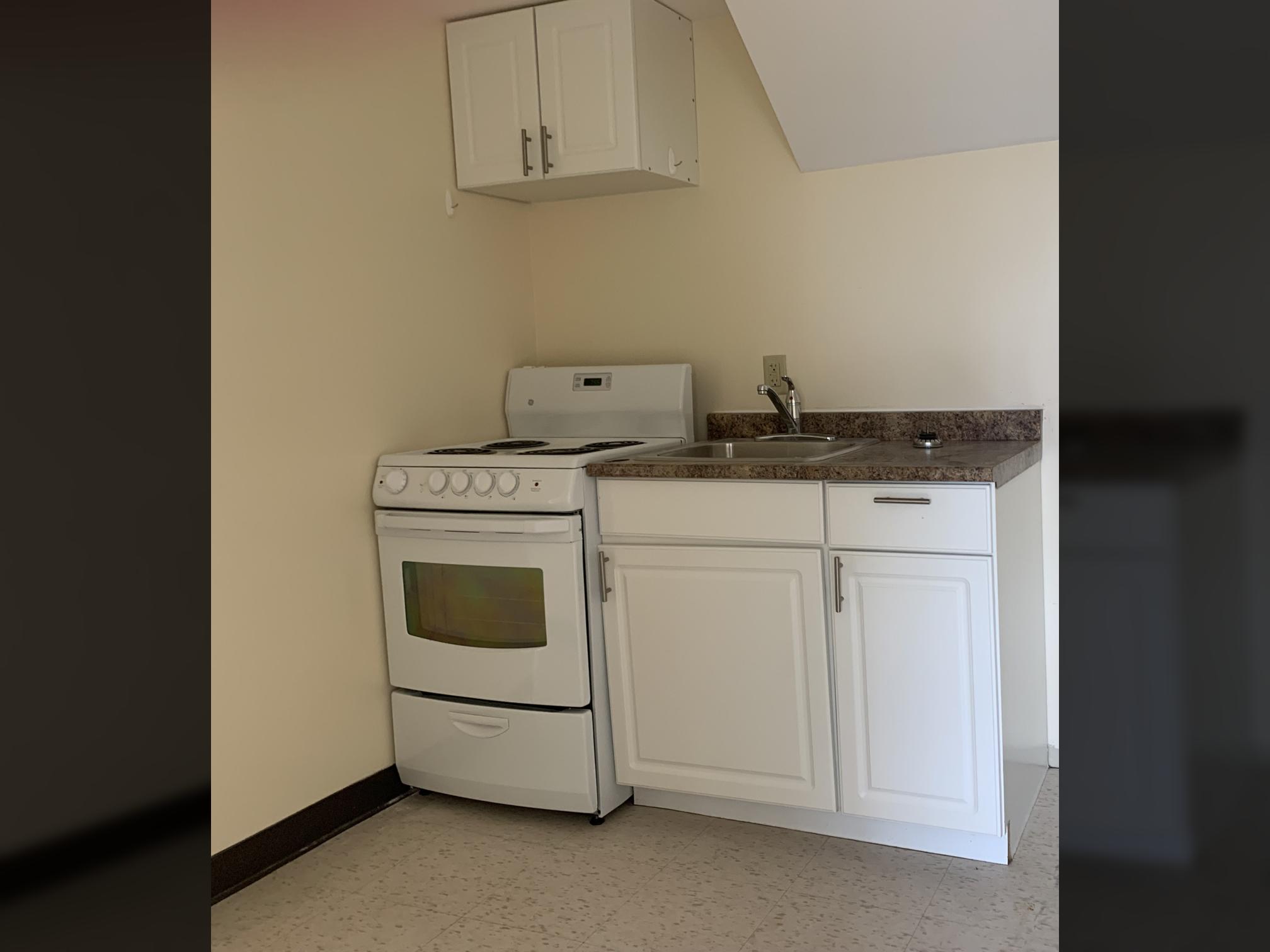 2 bedroom apartment with modest practical kitchen & living area to be renovated.