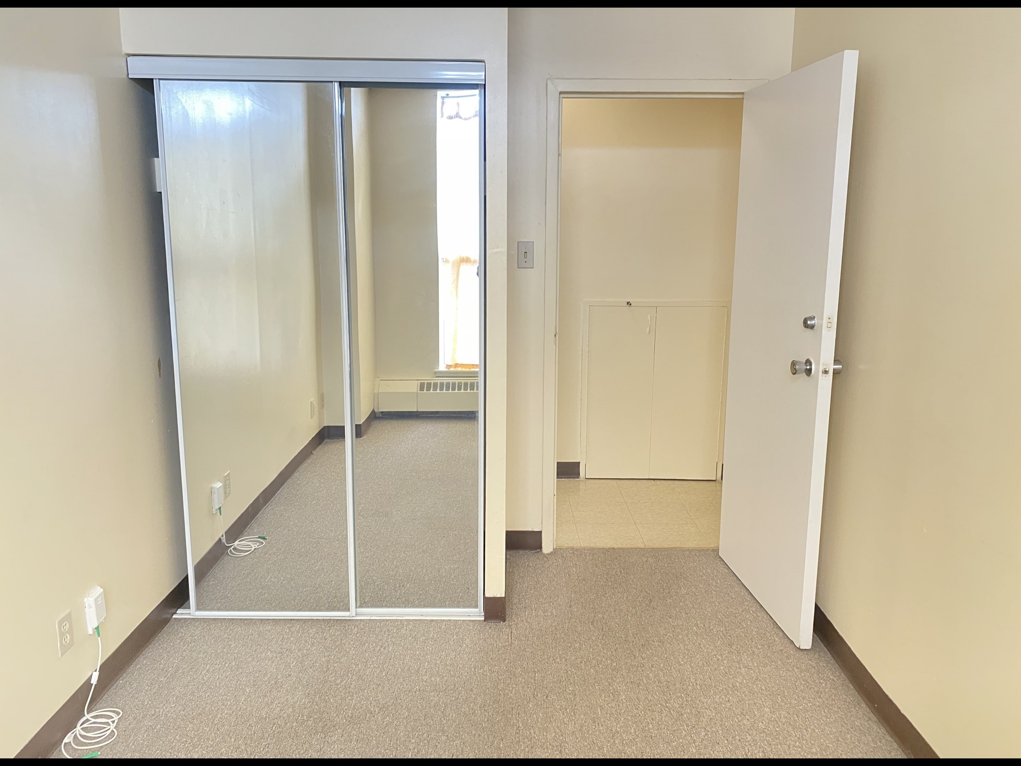 2 bedroom split level apartment with large bedrooms a private balcony overlooking Princess Street, view of Lake Ontario, and a walk-in closet.